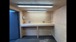 In Kington, we extended the original garage, installed a new power supply with wall sockets and 3 LED strip lights, insulated it and ply lined the inside. We also cladded the building in a Douglas Fir weatherboard and installed a insulated anthracite metal roof.